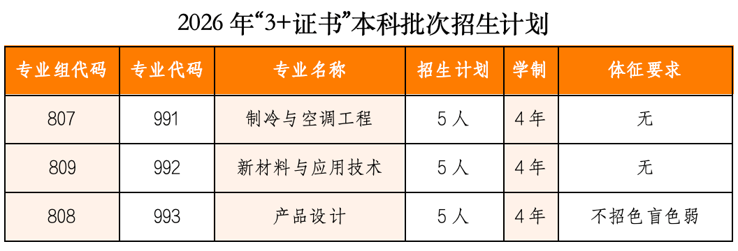 列位2026届3+证书中职考生留意了,高职高考本科新增,顺德职业手艺大学和广州职业手艺大学,学校曾经发布了《2026年春季高考招生章程》,本科批次3+证书初次招生!7所公办院校:韶关学院、嘉应学院、韩山师范学院、岭南师范学院、广东师范手艺大学、广东轻工职业手艺大学、深圳职业手艺大学;5所平易近办院校:广东工商职业手艺大学、广州科技职业手艺大学、广东科技学院、广州华立学院顺职大“3+证书”测验本科批次招生登科专业为制冷取空调工程、新材料取使用手艺产物设想,共招生15人。
