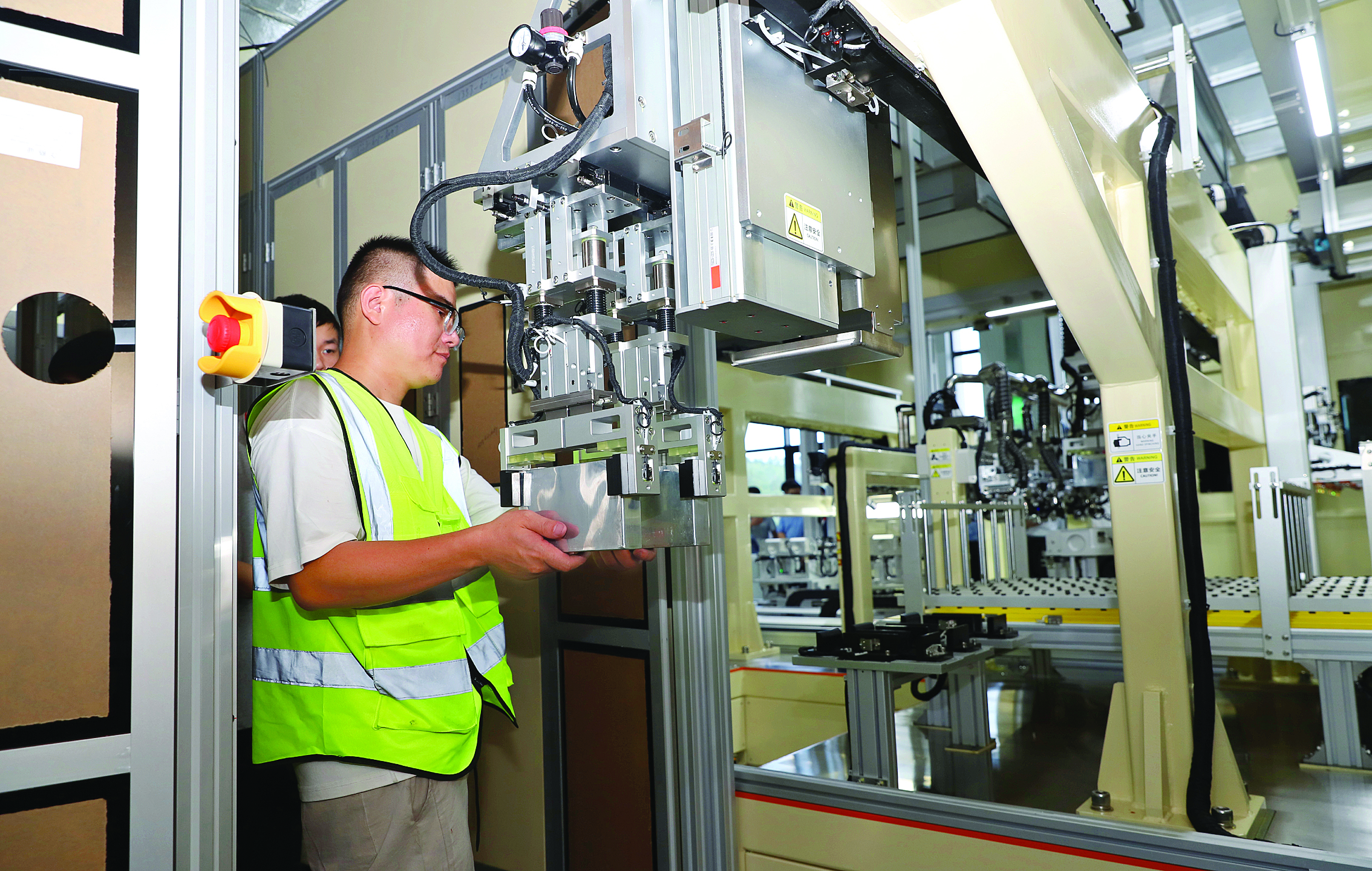 金源机械人公司通过自研AI机械人手艺,实现“用机械人出产机械人电池”。惠州日报记者钟畅新 摄。