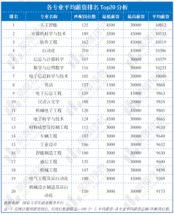正在供给薪资的岗亭中,薪资前20名几乎被工科(特别是电子消息类、机械类)和数理根本学科垄断。此中人工智能、计较机科学取手艺、软件工程包办平均薪资前三名。这取其正在宏不雅(行业薪酬第一)、中不雅(高聘请人数占比)的地位完全婚配,是高价值-高需求-高薪酬的完满闭环。从动化取数学取使用数学薪资也极其抢眼。从动化、机械、电气等专业正在笼盖率和薪资上的强势表示,制制业转型升级带来的遍及性、高价值人才需求;然而数学的高薪是宏不雅大将来财产结构和微不雅上算法驱动财产升级配合感化的必然成果。英语和汉言语文学专业跻身前十,言语取文字能力正在全球化沟通、内容创做、品牌等范畴仍然保有不变的市场价值,但其薪资天花板相对于工科较着较低;然而对于商科的薪酬定位来说,岗亭高笼盖的市场营销专业薪资却处于Top20排名开外,这一现象申明该专业结业生虽然具有较多的初入职机遇,但其薪酬程度的提拔高度依赖于所处行业范畴及小我业绩表示,纯真的学历布景难以带来显著的薪酬溢价。